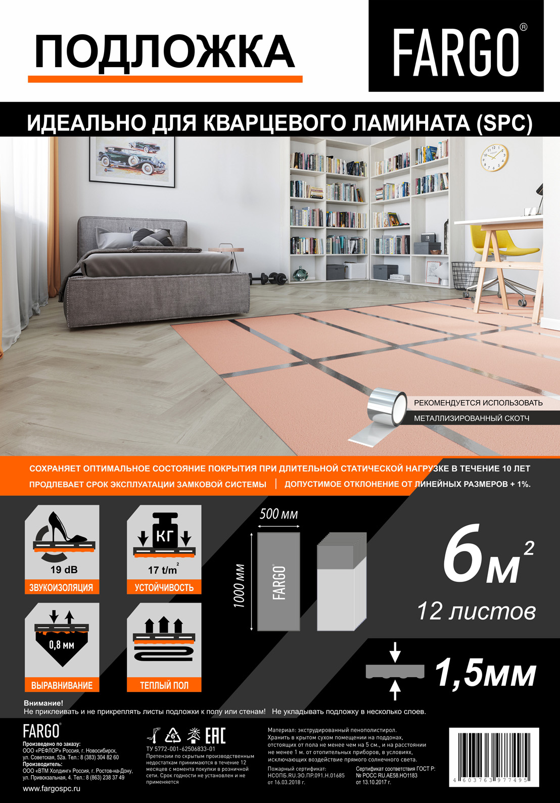 | Подложка Fargo Премиум из сшитого полиэтилена (IXPE) 1м*10м*1,5мм (1 рул.- 10м2) |